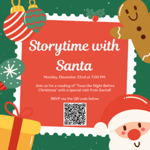 Join us for a reading of “Twas the Night Before Christmas” with a special visit from Santa!!