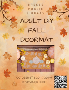 Join us on Wednesday, October 8th at 6:30 PM to make a fall inspired doormat to put outside your front door! All supplies will be provided.