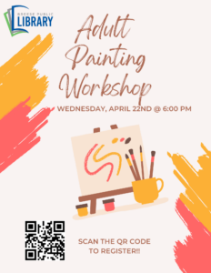 Adult Painting Workshop by Jenna Astroth March 23, 2026March 23, 2026 0 comments Calendar Add to Calendar Add to Timely Calendar Add to Google Add to Outlook Add to Apple Calendar Add to other calendar Export to XML When: April 22, 2026 @ 6:00 pm – 8:00 pm 2026-04-22T18:00:00-05:00 2026-04-22T20:00:00-05:00 Please register via the link: https://docs.google.com/forms/d/e/1FAIpQLSciEVBaPxSv5atqvWdLkdDvAZPaxgQAkVYvLJbGnklmCgNA3A/viewform?usp=header Share